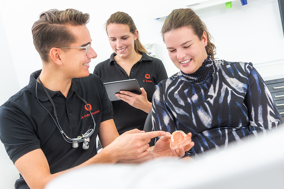 Unser Team besteht aus zwei Zahnärztinnen, einem Zahnarzt und kompetenten Mitarbeiterinnen. Wir alle freuen uns auf Sie und werden Ihren Besuch bei uns so angenehm wie möglich gestalten! Wenn Sie Fragen haben, zögern Sie bitte nicht uns jederzeit direkt anzusprechen.